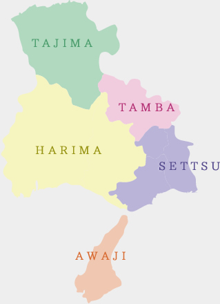 - Settsu in the southeast, Harima in the southwest, Tamba in the central east, Tajima in the north, and Awaji island in the Seto Inland Sea to the south – the five districts have their own history and climate that have supported the development of their unique industries and cultures.