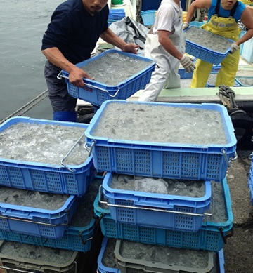 シラスは傷みやすいため、鮮度がとても重要です。そのため、漁獲後すぐに冷水で冷やし、船上でコンテナに積みかえるなど、新鮮な状態で市場へ届けられるよう工夫されています。また、市場ではシラスの大きさや鮮度によって、塩加減やゆで加減を変えています。また、大きさによって名前も異なります。主に2cm程度の大きさまでは「シラス」と呼ばれますが、3cm程度になると「カエリ」と呼ばれるようになります。