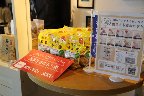 (株)マルヤナギ小倉屋や、さかなのおにいさん かわちゃんによるトークショーは大盛り上がり!県産もち麦や兵庫の魚・海の魅力をたっぷりご紹介いただきました。また、兵庫県漁業協同組合連合会、(株)マルヤナギ小倉屋による、水産加工品ともち麦加工品の即売会を実施。イベント当日は兵庫県マスコット「はばタン」も会場に駆けつけました。