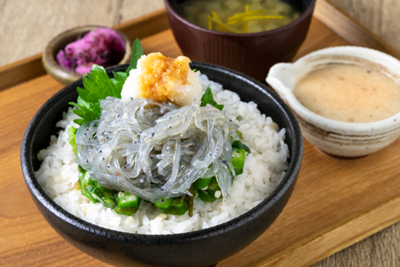 当イベントでは、“兵庫ならでは”の“食”をテーマとし、神戸・播磨・但馬・淡路の各地が誇る食材を使用した兵庫グルメを満喫することができます。神戸ポークを使用した小籠包や北坂たまごを使用したオムライス等、メニューは盛りだくさん!生シラスの自然薯とろろ丼にはもち麦を使用しており、プチプチとした食感と生シラスのとろけるような食感がとても美味でおすすめです。