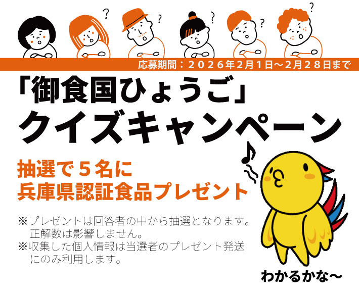 🎁 抽選で 5名様に兵庫県認証食品 を贈呈いたします。