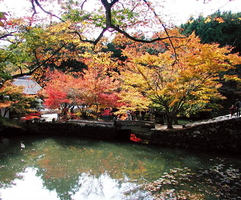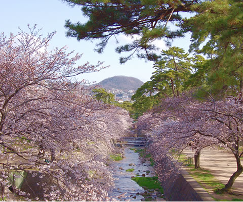 There are many famous spots to enjoy spring cherry blossoms and autumn leaves throughout Hyogo. Around Himeji Castle, approximately 1,000 cherry blossoms, including Yoshino cherry and weeping cherry trees, bloom in spring and color the main keep and white walls of the castle. Shukugawa Park, located in Nishinomiya City along the Shukugawa River in the Settsu district, has as many as 1,040 cherry trees on the banks and attracts visitors from nearby prefectures as well. Meanwhile in autumn, the colored leaves in some temples in Tamba (Kogen-ji Temple, Entsu-ji Temple, etc.) and the Momiji Valley in Tatsuno Park under Mt. Keiro in Harima also attract many visitors.