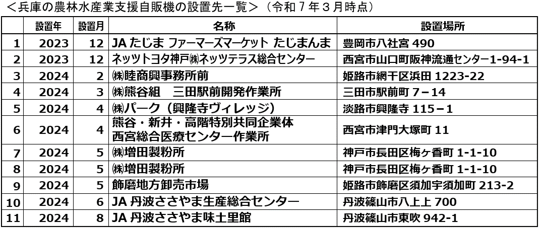 皆様には、引き続き兵庫の農林水産業支援自販機のご利用を通じて、ひょうごの美味し風土拡大協議会への理解とご協力をお願いします。